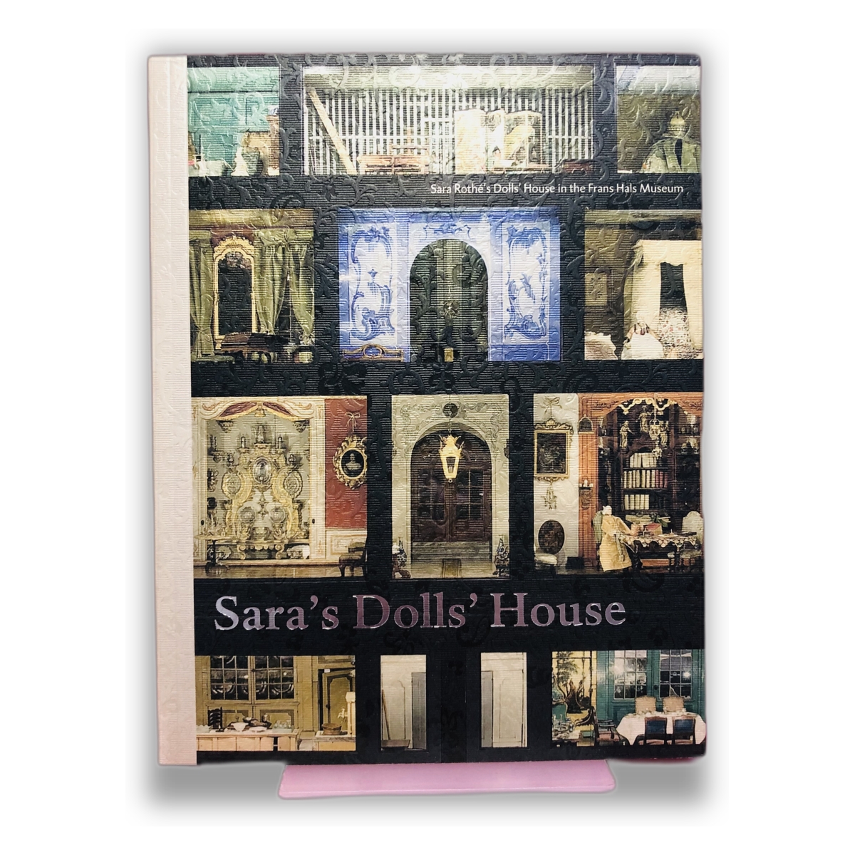 Um livro que explora a casa de bonecas de Sara Rothé, localizada no Museu Frans Hals, apresentando detalhes e histórias sobre as peças e a coleção.